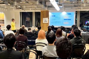 ピッチイベントでの事業紹介。この日はプロのUI/UXデザイナーが関わるインパクトについて説明をしました。企業のウェビナーなどへの登壇もさかんに行っています。