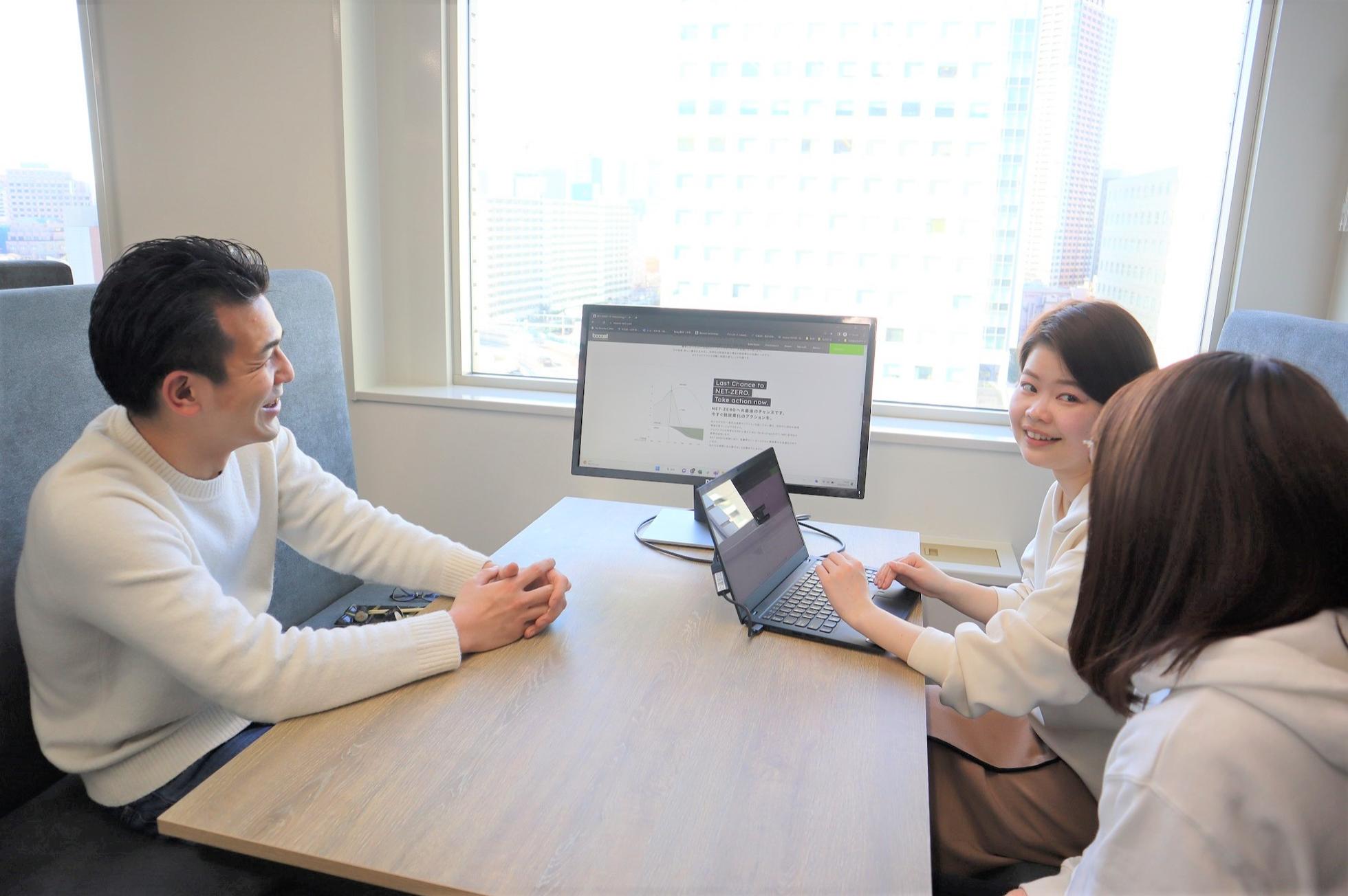 カジュアルな情報交換から真剣なディスカッションまで、社内ではコミュニケーションを積極的にとることで、日々変化のある業界知識を共有し合っています。サステナ商品の情報共有も盛んで、日々のファッションにサステナブルを取り入れている社員も多くいます。