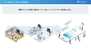 自宅のリビングのように、会社でも自然と人が集まり、そこでちょっとした雑談や新たなコミュニケーションが生まれるオンライン空間を目指す。