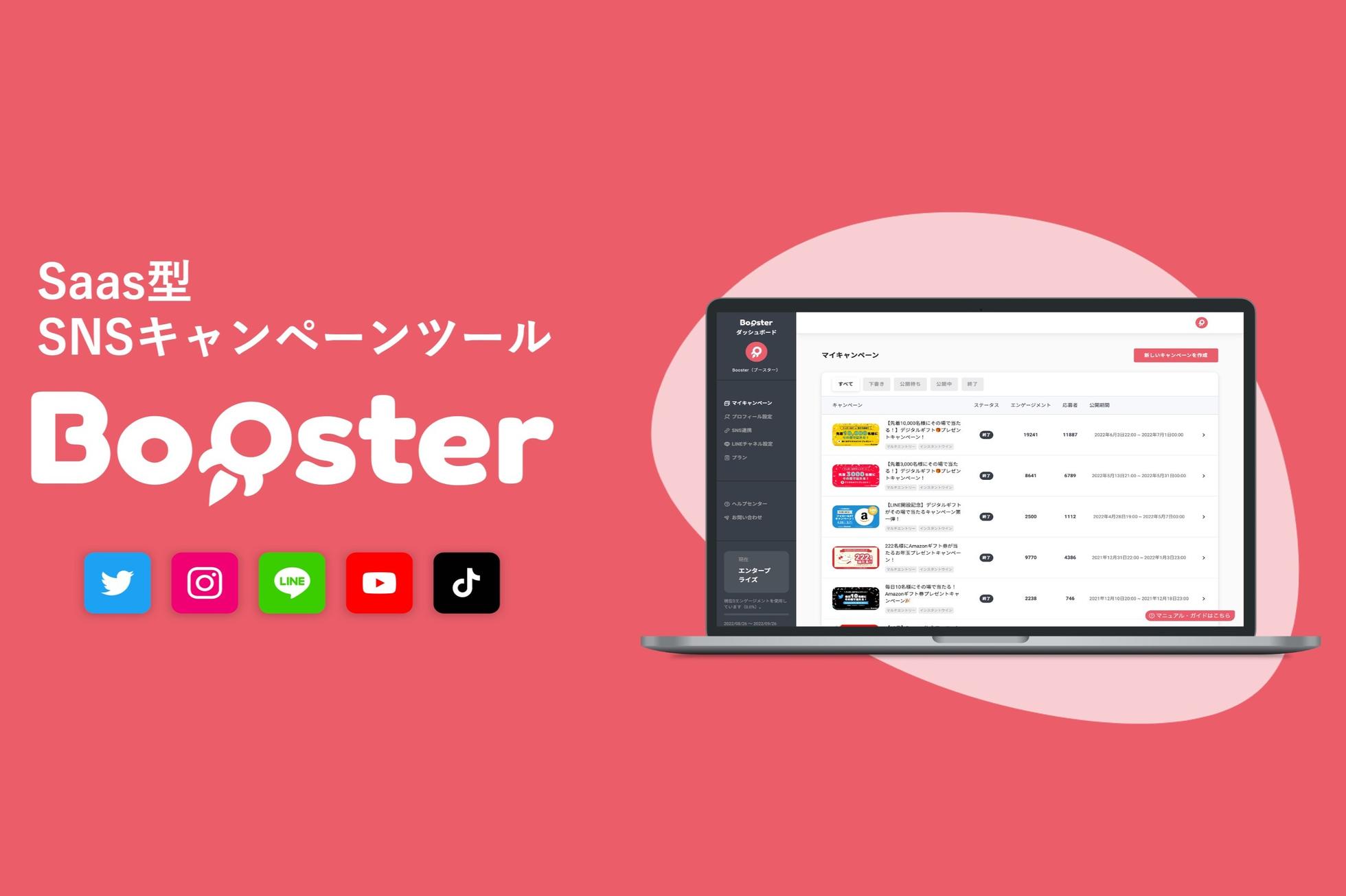 Boosterは誰でも簡単にSNSキャンペーンが開催できる、クリエイター・ブランド・企業向けのSNSキャンペーン運用ツールです。