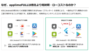 iOSとAndroidの両方を1つの言語で開発できるFlutter(フラッター)の活用により、一般的なアプリ開発の1/2の工数で制作することが可能です。