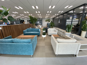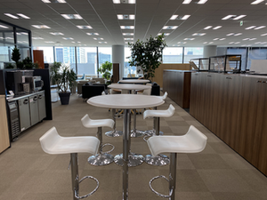 執務エリアはフリーアドレス制になっています。スタンディングで仕事したり、ソファーでリラックスして仕事したりと、気分転換しながら業務に就いています。
