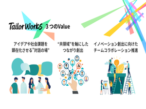 「 Tailor Works 」は、多様な人々と共感やビジョンでつながり、世界を変えるアイデアを実現する共創コミュニティプラットフォームです。