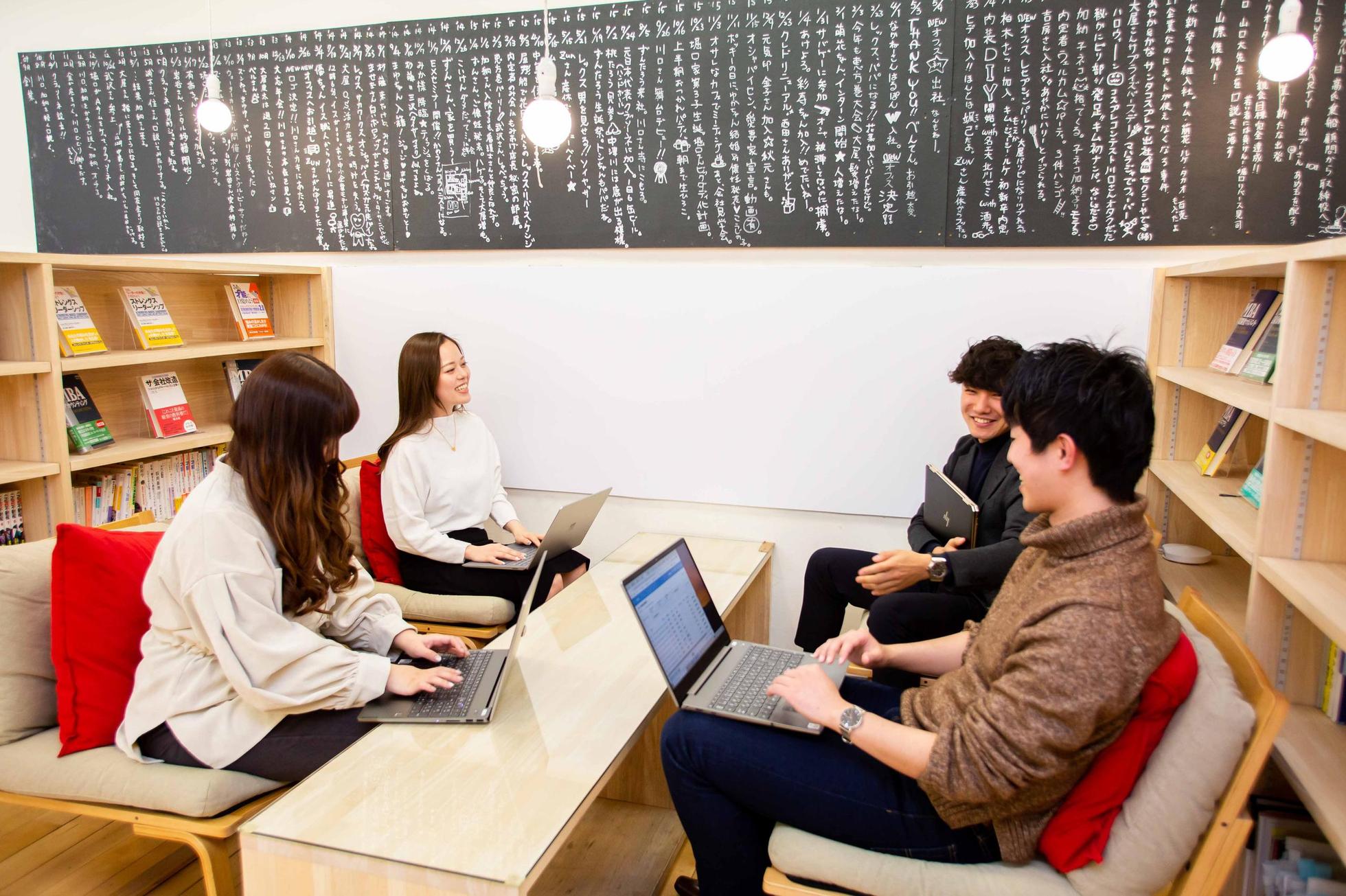 名古屋本社のオフィスです。現在はリモートワークがメインですが、オフィスはクルー同士のコミュニケーションにとって大切な場です!