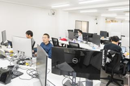 社内のオフィスはこのような感じ、開放感があり、集中して働けるオフィスです。