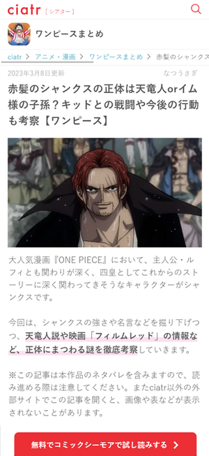 赤髪のシャンクス考察記事(https://ciatr.jp/topics/152733 )