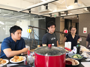 Barカウンターやトレーニングマシンがある憩いのスペースがあります。(移転直後の流しそうめんイベントでは、急遽キッチンカウンターに変身!)
