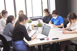 ネイルサロンチーム・プロダクトチーム・マーケティングチーム・管理チームそれぞれのリーダーが集まっての会議。チームごとに役割は違いますが、目的は同じ!チームプレーでより良い+αの提供を諦めません!また、やる時はやるメリハリのある働き方を大切にしています。