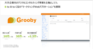 B to B to C向けのWebアプリケーション型パッケージ「Grooby」を展開しております。