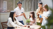中国・上海の大学を卒業後、広告代理店プランナー、ベンチャー企業での新規事業立ち上げ等を経験し起業した代表をはじめ、 大手広告代理店の営業職、有大手飲食店グループの新店開業担当、元アイドル、大手航空会社グランドスタッフ…など、 アマダクションには、様々なバックグラウンドを持つメンバーが集まっています。 アマダクションでは、社員全員が、 それぞれのビジネスストーリーの育成マネージャー / プロデューサーと考え、 裁量と熱量を持って事業に取り組んでいます。 4階建て一軒家オフィスならではの、ゆとりのある空間では、 各事業担当のメンバー同士によるコミュニケーションも活発で、 事業部間の連携やシナジーも日々生まれています。