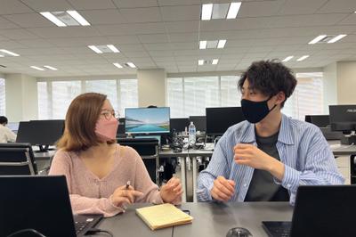 フリースペースも多く交流しやすいオフィスです!現在は週3日出社にて勤務しております。