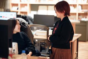 恵比寿駅徒歩3分のオフィス、コラボレーションを生み出す場所として対面コミュニケーションも大切にしています。
