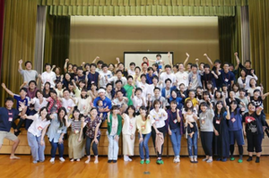 島根県で運営している「おんせんキャンパス」での全社会議の風景。年に1度、全職員が集まり(昨年からはオンライン)、カタリバの提供価値や今後の事業に関して意見を交わします。