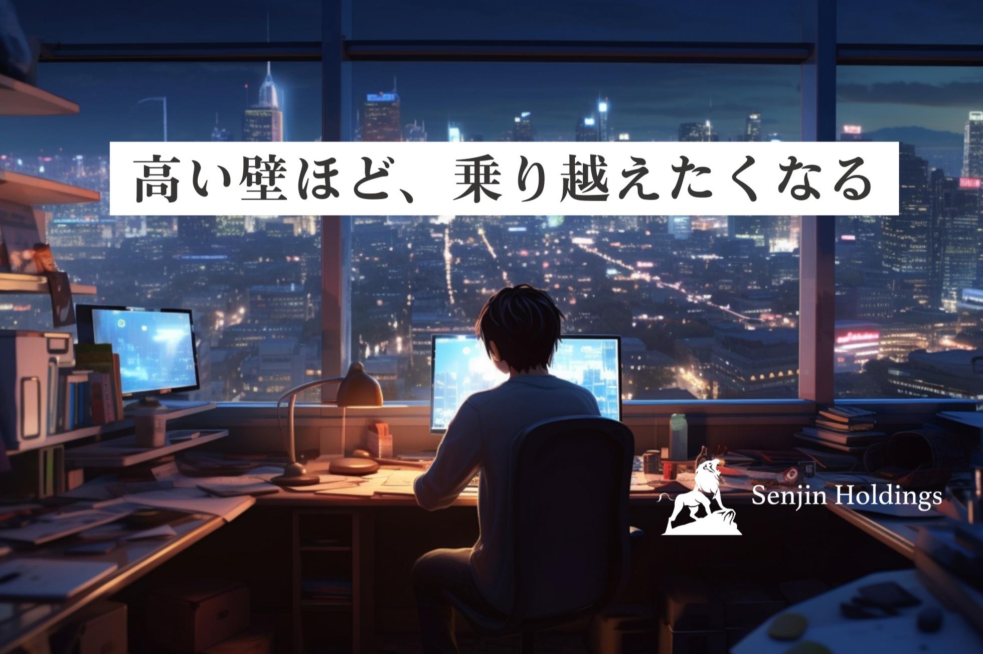 Senjin Holdingsは、ビジョンである 「世界を最も加速させる組織」を実現すべく、 20代のメンバーを中心に熱狂的に事業に取り組んでいます。 前身となる企業の株式会社CoinOtakuは、 2017年10月に設立し、半年で200万PVを達成。 日本有数の仮想通貨メディアとして注目を浴び、6億円で上場企業へのバイアウトを行いました。 バイアウトしたから終わりではなく、 引き続き若い才能と共にビジネスによって熱狂的に世界を変えることにコミットしたい。 そのためのチャレンジの機会を日本一用意した会社を改めて作りたい。 そう思って、個人としては”第二創業”ともいえるSenjin Holdingsの設立を決心しました。 私たちは、本気でビジネスの世界でno1を取りにいきたいと思っています。 どうせやるなら高い山に登ろう、日本にとどまらず世界を代表するリーディングカンパニーを志そうということです。 只、ビジネスの世界でのNo.1とはどういうことか。 資本主義の中で勝つこと。これは大前提。 ビジネスの世界で戦うなら圧倒的な利益を出し、社会に貢献することが必要だと考えています。 それを恒久的に行っていくためには、 「世界の流れを早くすること」にコミットするべきだと考えています。 「世界の流れを早くすること」とは、 2100年に起きるはずだったことを2080年に起きるようにすること。 月に行けるから火星に行きたくなって、火星に行きたくなるから太陽系の外に行きたくなる。 人は欲望を満たすことで次の欲望を満たしにいく。 この連鎖を世界レベルで加速させていきたいと思っています。