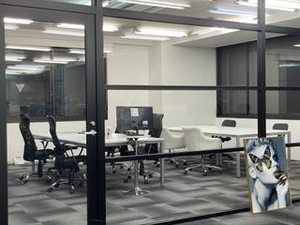 スケルトン会議室になります。周りの音などを遮断し集中したい際などにも使っていただけます!