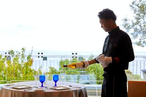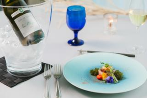 時間と共に移ろう海の色を眺めるオーシャンビューダイニング