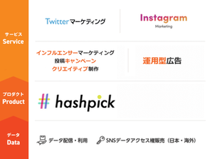 データドリブンなSNSマーケティング支援を展開。独自のソーシャルリスニングツールを用いたデータ分析を軸とするマーケティングが強みです。インフルエンサー活用やSNSに特化したキャンペーンやクリエイティブ制作、SNS広告(運用・獲得)、運用代行など、SNSマーケティング支援サービスを一気通貫で提供しています。