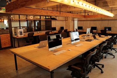Meeting Room:昼夜ともに来客も多く、多目的に活用されるミーティングルームは、シェードランプとスポットライトで充分な光度を確保。可動式の間仕切りを解放すると30名程度が着席できる空間になるため、オーディションなどにも多く利用されています。