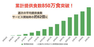 2020年のサービス開始時と比較して、週次の平均提供食数は約62倍に成長しています。