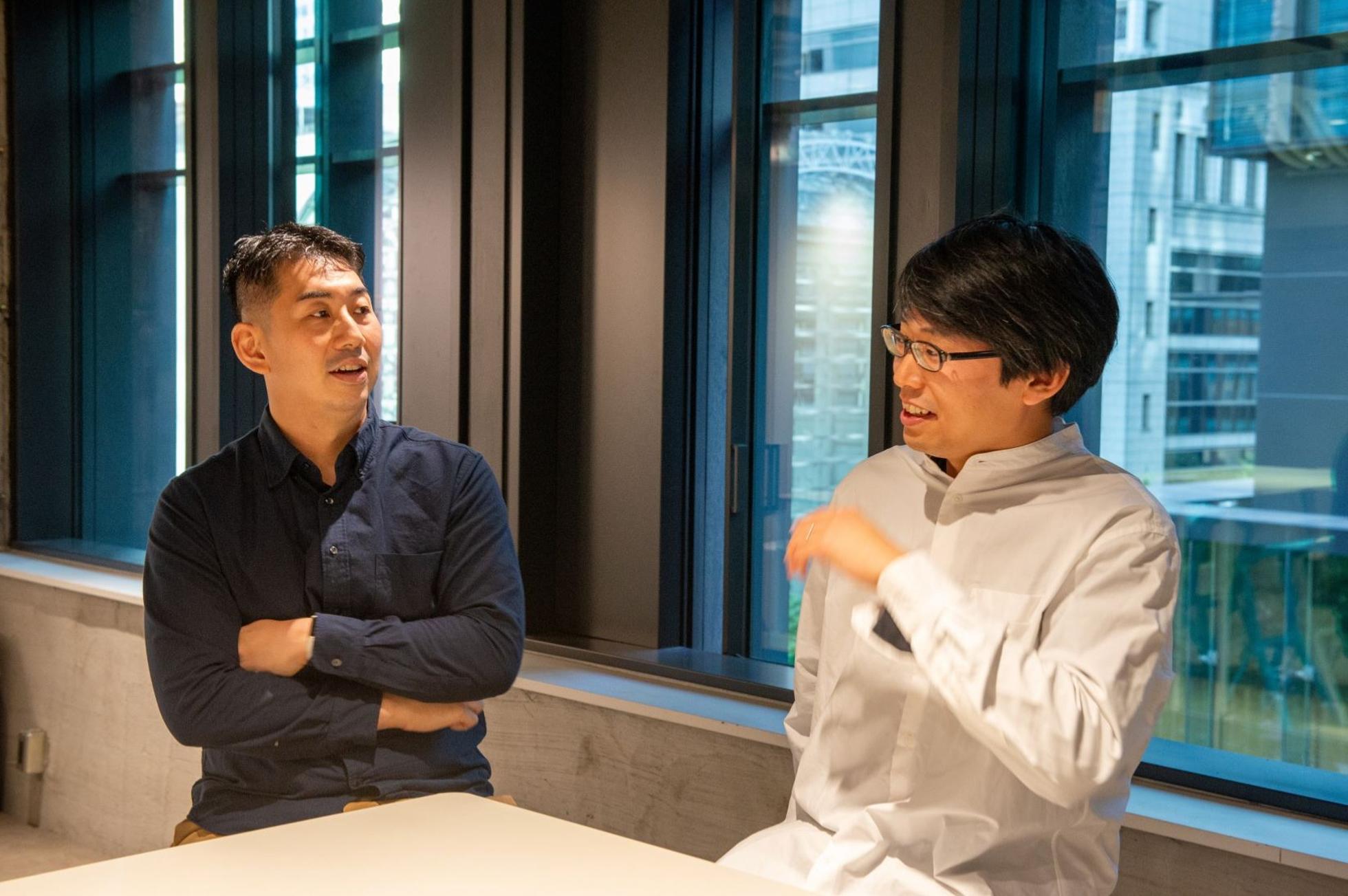 創業者の島原(左)と代表取締役社長CEOの鎌田(右)。「研究から、ワクワクを」そんな気持ちで当社を創業しました。