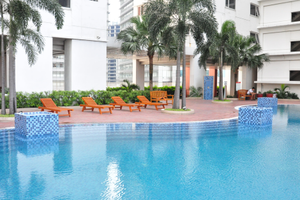 オフィスから徒歩圏内のプール付きコンドミニアムに滞在可能です