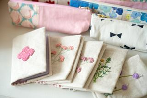 一針一針心を込めて、丁寧に縫い上げる刺繍。織物やキャンドルなどのハンドメイド商品は、kyoto coutureというブランドで展開しています。