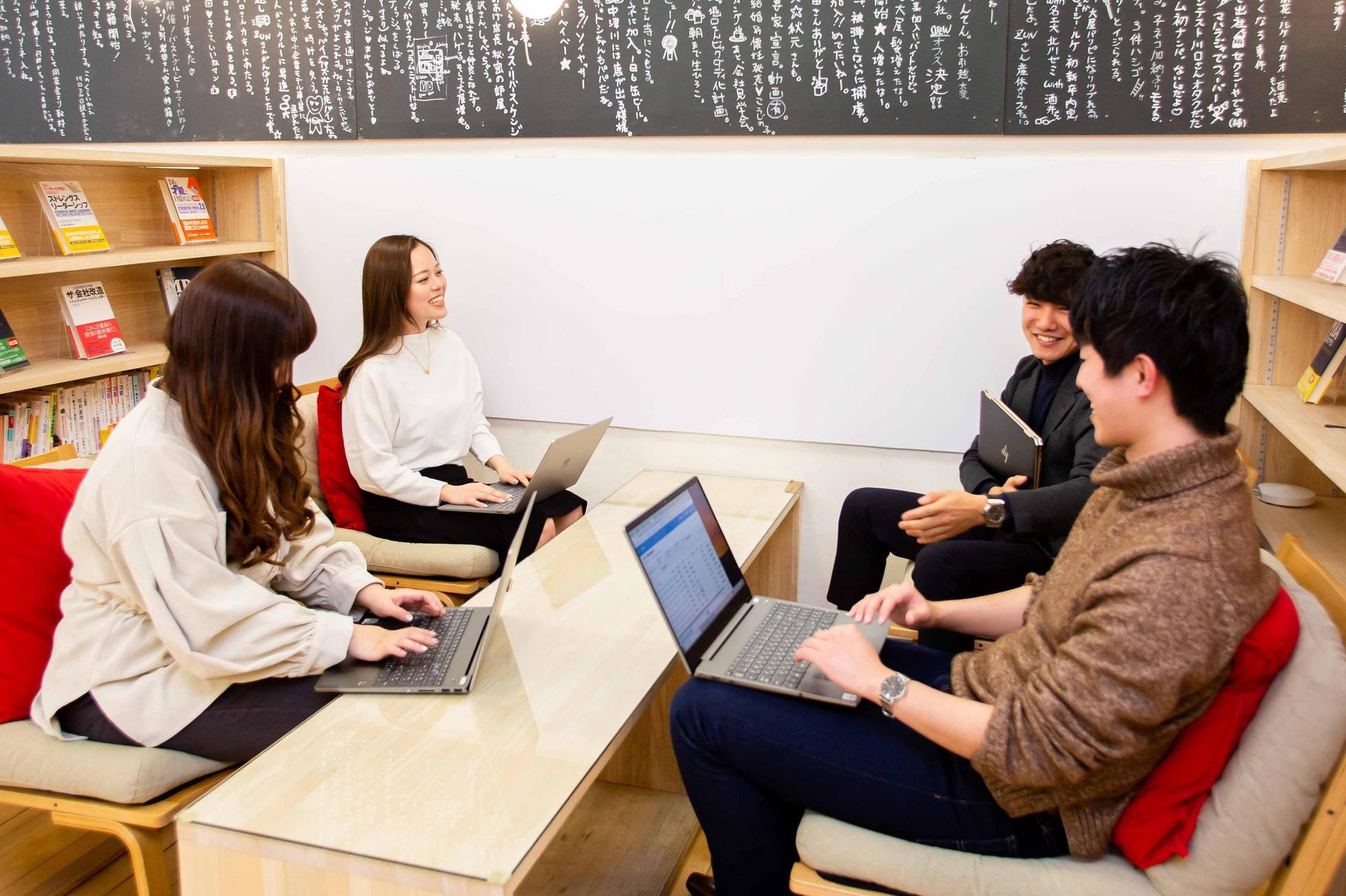 名古屋本社のオフィスです。現在はリモートワークがメインですが、オフィスはクルー同士のコミュニケーションにとって大切な場です!