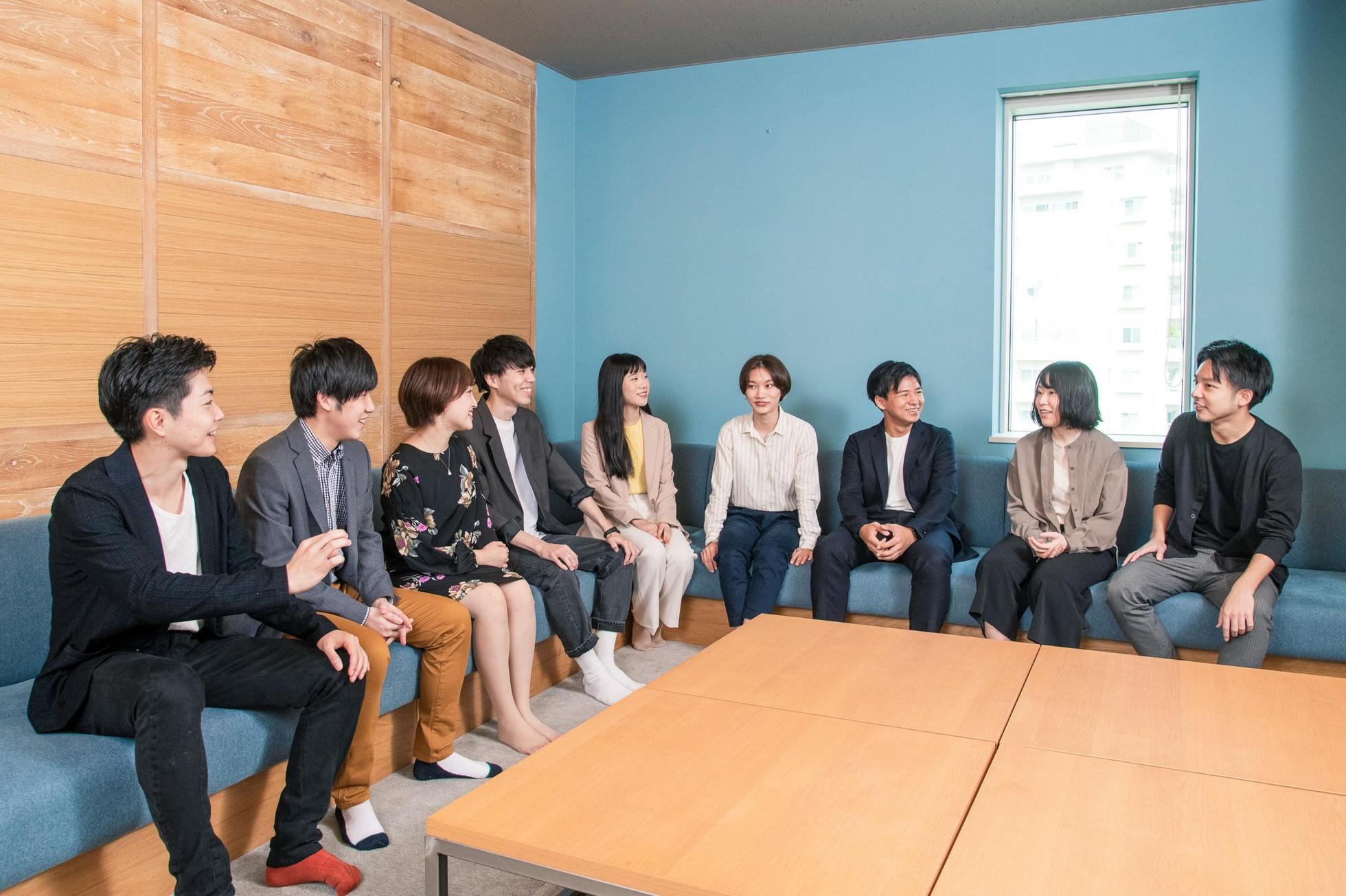 10階にあるフリースペースで打ち合わせ。開放的な空間でのびのびを議論することができます。