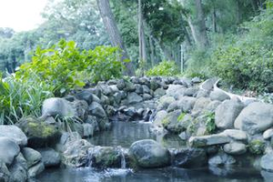 厚木の自然との共存を目指したビオトープは、施設内にある井戸水を循環利用しています。近くのベンチに座り、自然の音に耳を傾けて、ゆっくりとリラックスすることができます。