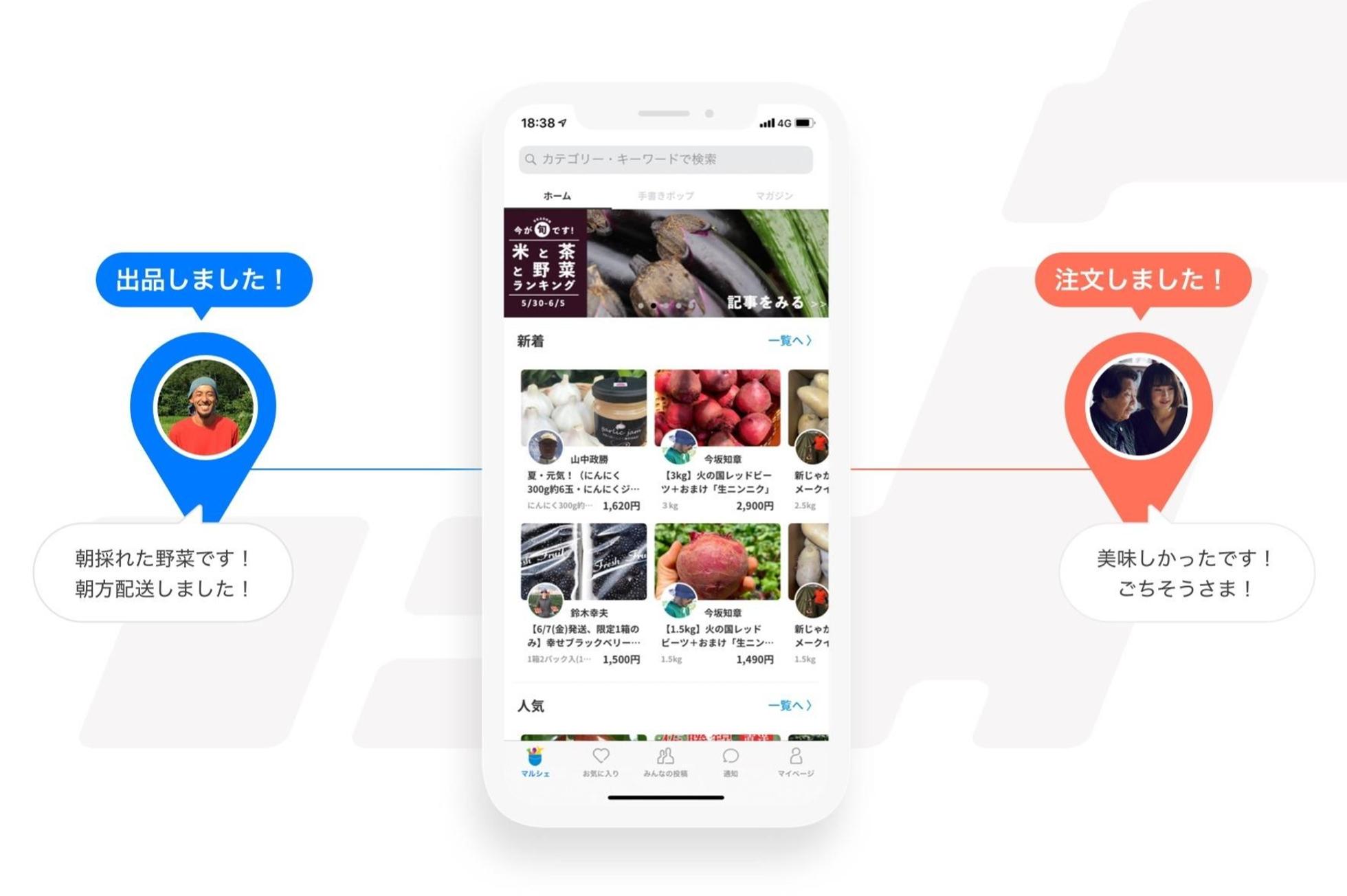生産者と消費者が直接つながり、コミュニケーションをとりながら旬の食べものを売り買いできるプラットフォーム「ポケットマルシェ」