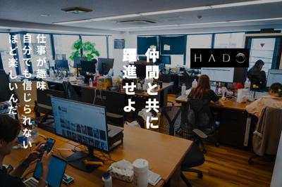 【創業背景】 創業者の田中が前職でサラリーマンとして働いている時、通勤電車でため息をつく大人が苦手でした。飲み会で仕事の愚痴を言う同僚が苦手でした。 どうせ働くなら、後ろ向きな気持ちで働きたくない。 今日のレベルアップを楽しんで、明日からの挑戦にワクワクして働きたい。 自分だけでなく、自分の周りの人たちがそんな前向きな気持ちで働ける場所を作りたい。 そんな想いからHADOを創業しました。 【自らと若者の人生のブレークスルーポイントに。】 新卒至上主義が根強く残る日本では、一度レールから外れてしまった方に対する風当たりは強いです。 創業者である田中も大学を中退していますが、学歴がないことで苦い思いをした経験がたくさんあります。 何らかの理由で会社を辞めてしまった、もしくは就職できなかった方は、確かに一度レールから外れてしまった“経歴に傷がある方”なのかもしれません。 しかし、だからこそ彼らには「次こそは失敗できない」「もう後がない」という焦りと強い覚悟があります。 私たちHADOは、私たちへの相談が彼らの人生のブレークスルーポイントになるように、一人一人の人生に本気で向き合って、日々業務に励んでいます。 【若手の才能開花に投資します。】 HADOは、若い才能が世界を前に進めると確信しています。 世界を前に進めるのに、年齢は関係ない。 むしろ若いエネルギーを才能開花にフルベットすることこそが重要だと。 「若いうちはまず大企業で経験を積んでから〜」なんて言っているとあれよあれよといううちにエネルギーは落ちたり家族ができたりと挑戦のハードルが上がっていきます。 だからこそ、今。 人生で一番気力のある今、挑戦をしよう。