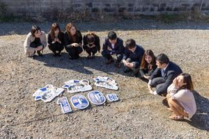 100棟を記念に、メンバー全員でパネルと一緒に記念撮影。