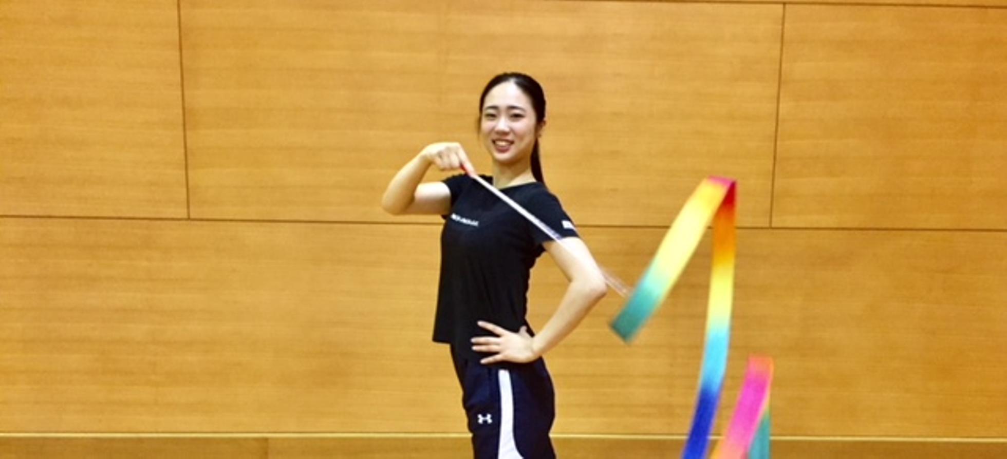 新体操日本代表「フェアリージャパンPOLA)の杉本早裕吏選手(右)・竹中七海選手(左)・主宰の南 麻美(中央)。合宿の写真です。2人共、みなみ新体操クラブで、小さい時から一生懸命練習しました。