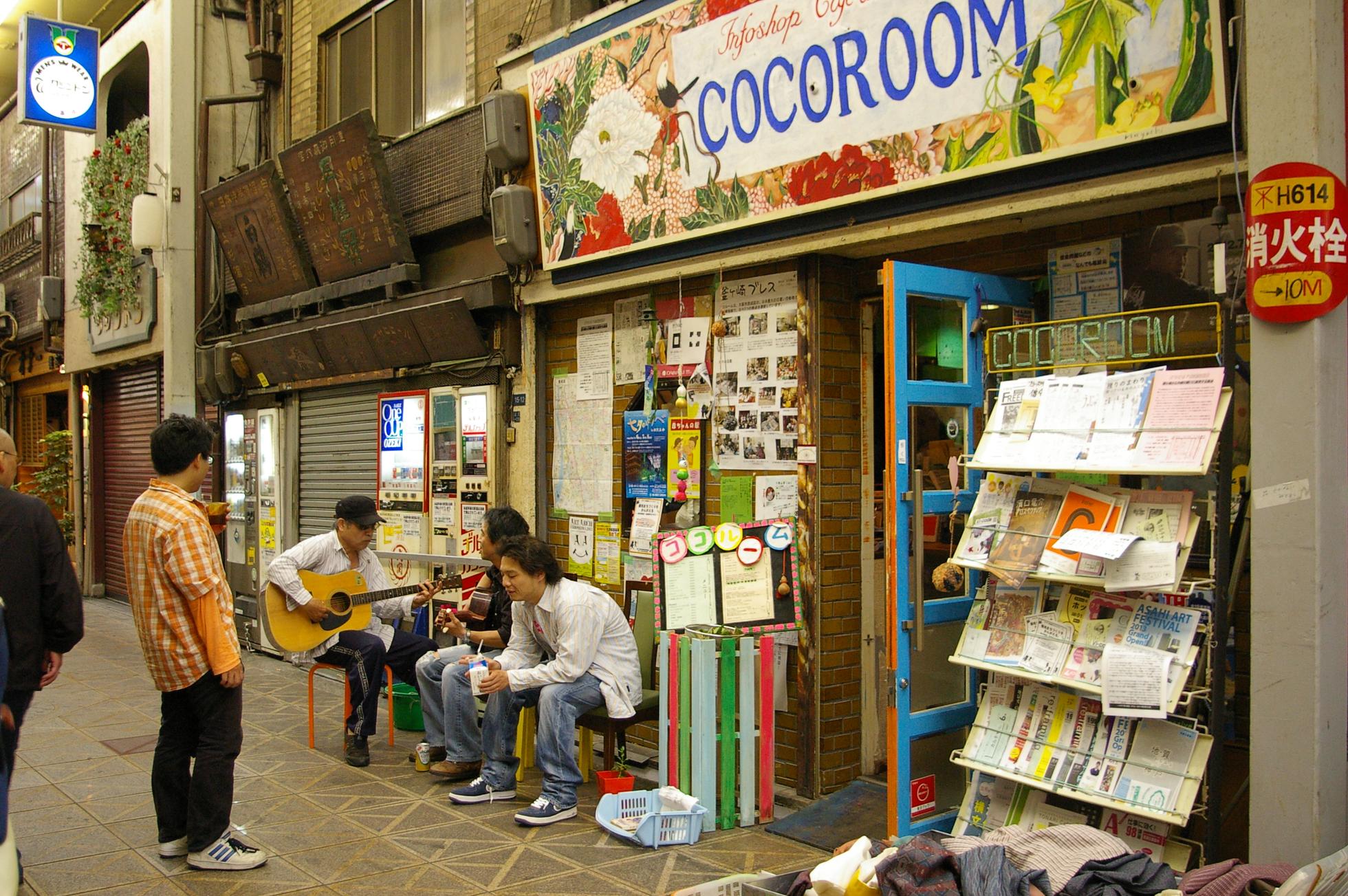 大阪・西成にある商店街「動物園前一番街」のなかにあるココルームは、アートNPOが運営するインフォショップ・カフェ。アートと社会の接続点、人々のつながりをつくる場所をめざしています。