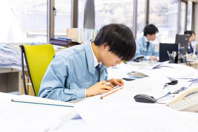ずっと文系で総務部志望だった私が技術職を選んだ理由は、この会社の人の温かさです! 技術職なんか無理だと思っていた私ですが、周りの方たちに支えられ、想像もできなかった”図面をかく”という仕事を通して日々やりがいを感じています!