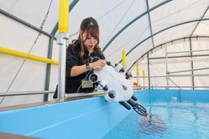 小型の水中ドローンは、暗い・狭いところにも入っていきます。