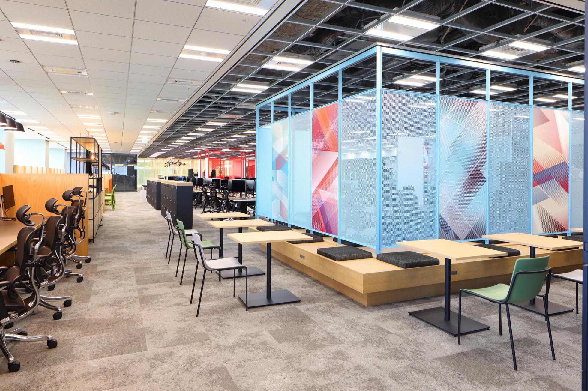 軽い相談やお願いなどは会議室を取らなくても場所を変えて会話できます。