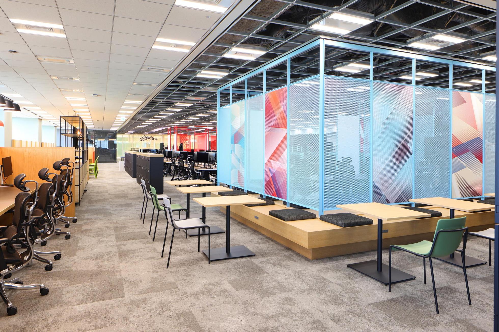 軽い相談やお願いなどは会議室を取らなくても場所を変えて会話できます。