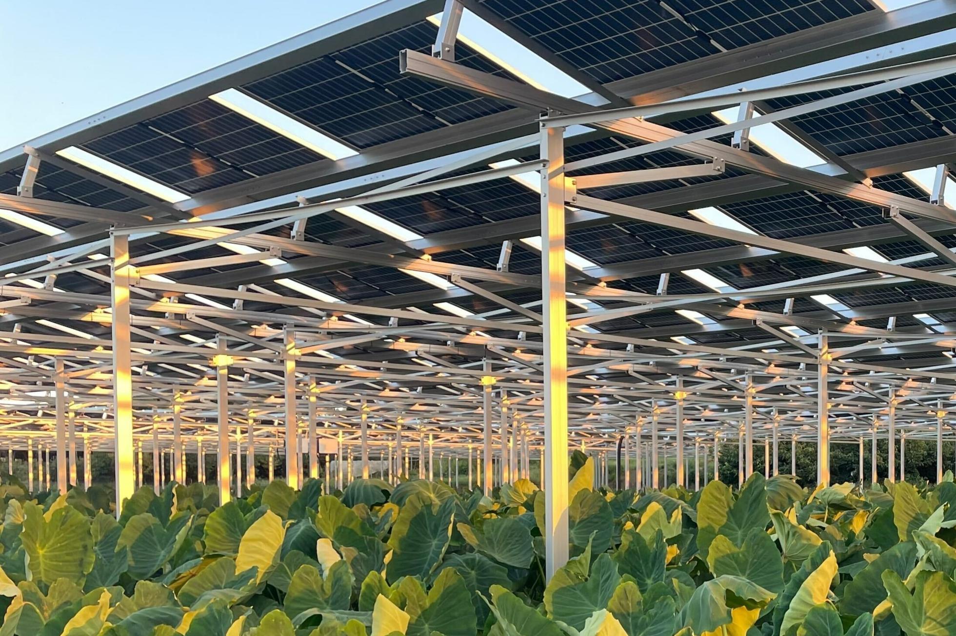 実際の営農型太陽光発電所の様子。気候変動に悩まされる農業。しかしパネルの下だからこそ、立派に作物が育ちます。