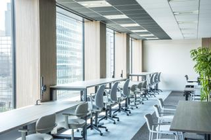 東京オフィスには、見晴らしも採光も良いカウンター形式の執務スペースがあります。