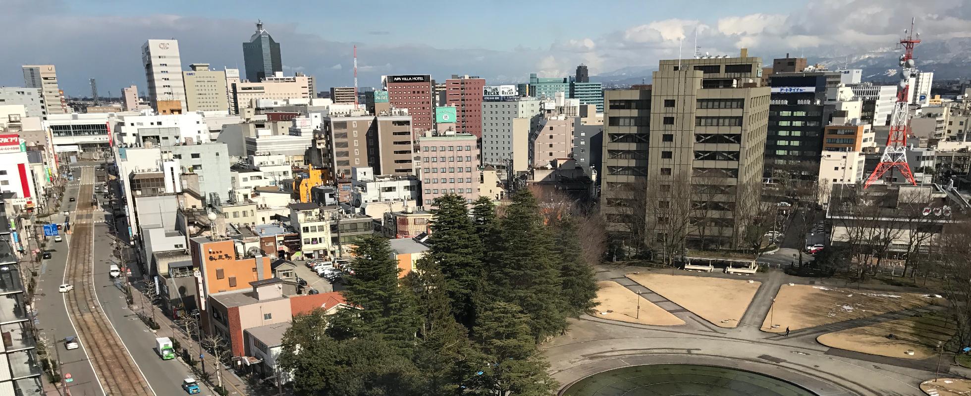 職場は富山駅前から徒歩10分、県庁前公園向かい