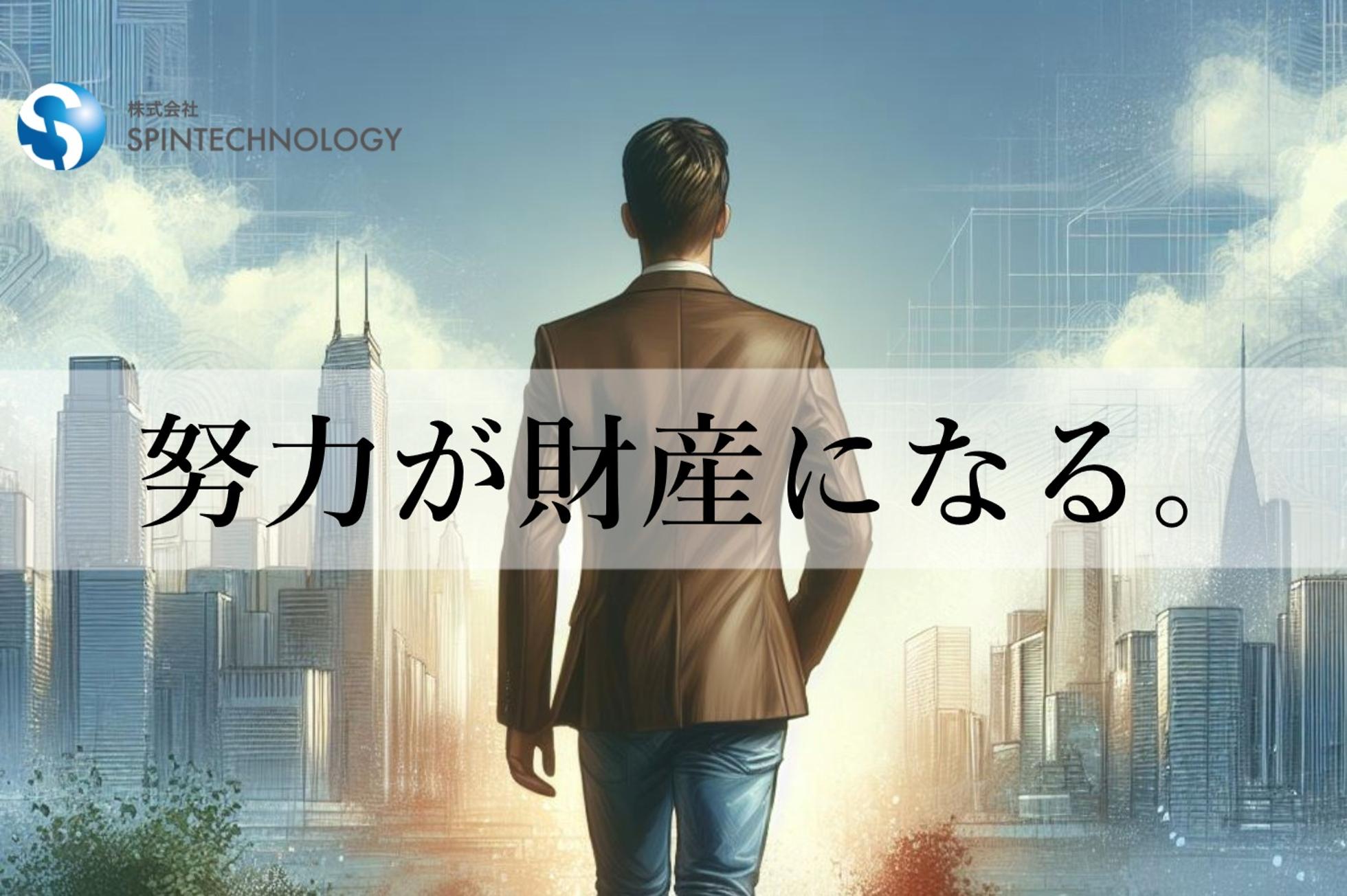 当社は創業間もないベンチャー企業です。 日本一のITベンチャーを目指す上で、問題も発生してくるかと思いますが、 経営理念として「志しむことからすべてがはじまる」と言う経営理念を掲げてます。 志しむと造語を使っていますが、簡潔に言うと志(人生の目的や動機=自己実現したい事)を成し遂げる事を楽しむという事です。 会社の仲間には、必ず幸せになってもらいたい。それが私の嘘偽りのない想いです。 会社と言うのは、1人1人が自己実現を実現する舞台であり、1人1人が主役で1人1人輝く場所です。 今現在、様々な想いを抱えてる人も多いと思います。 今までの人生順風満帆な人、かたや今まで上手くいかず挫折した人、これからが不安な人等、 どんな過去や現在があっても 自分を変えたい!どうにかしたい! と言う想いがあれば、スピンテクノロジーは最後の最後まで仲間の志を成し遂げるまであきらめない! 一緒に協力し時に、時には一緒に悩み、一緒に志しんで行く! そんな仲間と一緒に会社を作っていきたいと思います。