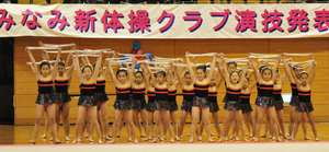 みなみ新体操クラブ演技発表会のジュニアクラスの発表風景です。日頃の練習の成果を元気いっぱい演技します。