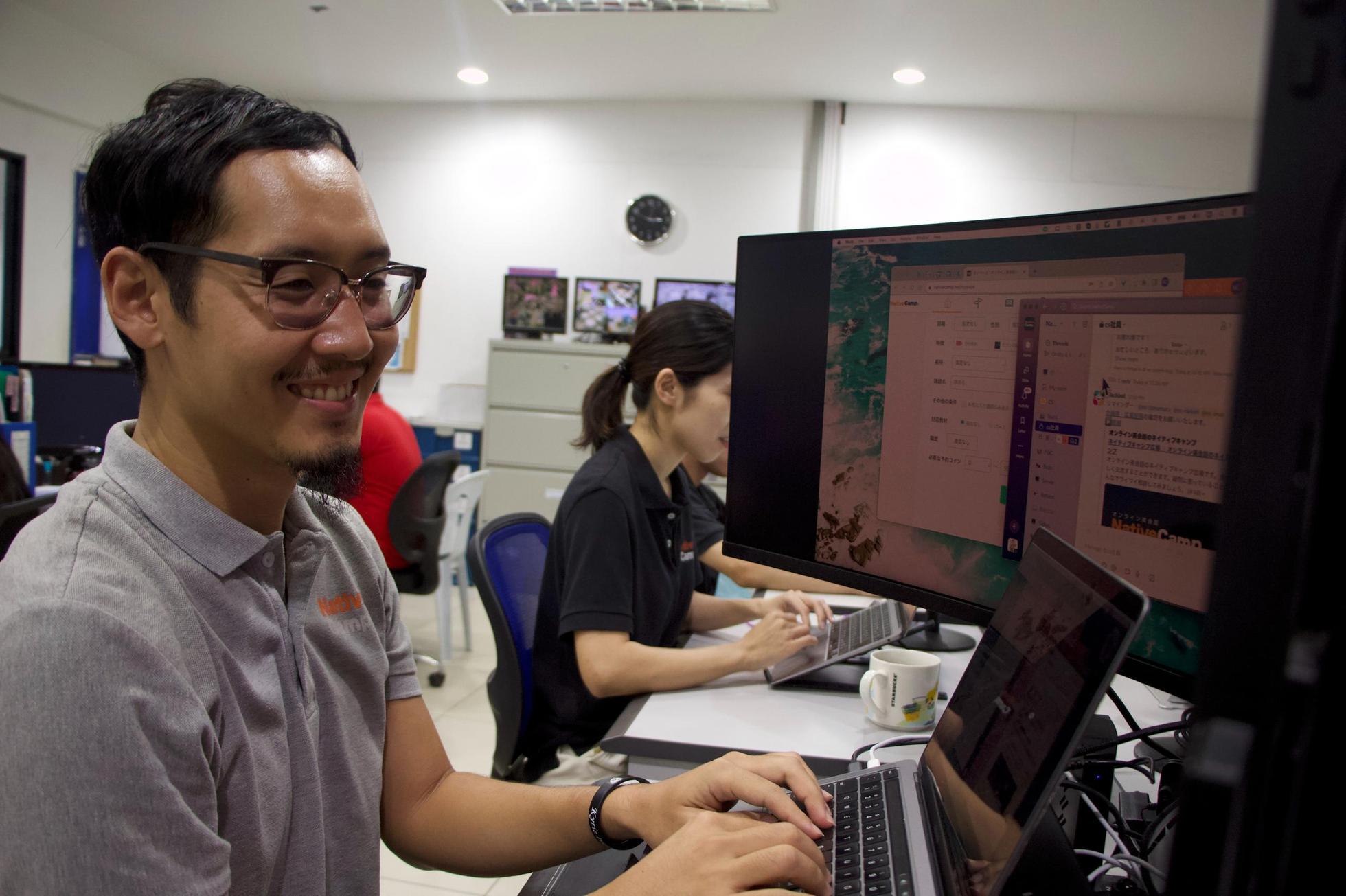 オンライン英会話「ネイティブキャンプ」を提供しています。ネイティブキャンプはWebサイトとアプリ(iOS/Android)にてサービスを展開しており、アジアにおいて急成長しているオンライン英会話事業の開発運営会社のひとつです。 世界各地に拠点をおき、アジア地域、ヨーロッパ地域、北米地域でオンライン英会話サービス事業を運営、その規模は急速に拡大し続けています。