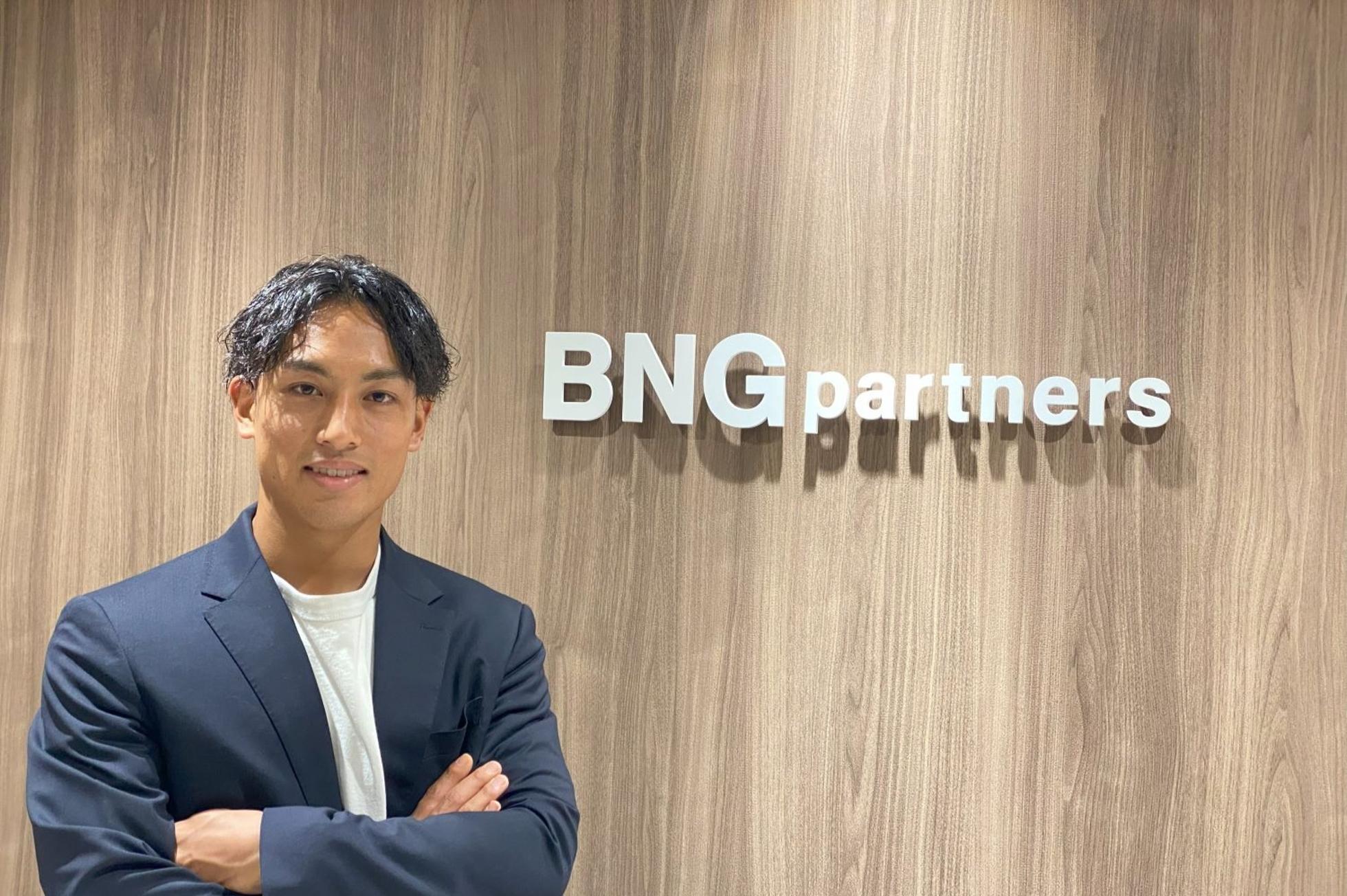 大学在学中にBNGパートナーズに参画。 その後大学卒業と同時にBNGパートナーズに入社。 2015年にエグゼクティブサーチ事業部グループマネージャーに就任。 2017年3月から執行役員に就任。 2020年 9月 取締役就任(現任)