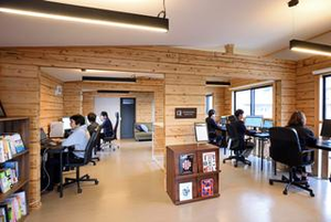 オフィスはJR郡山駅西口から徒歩10分。木の温もりのあるオフィスです。