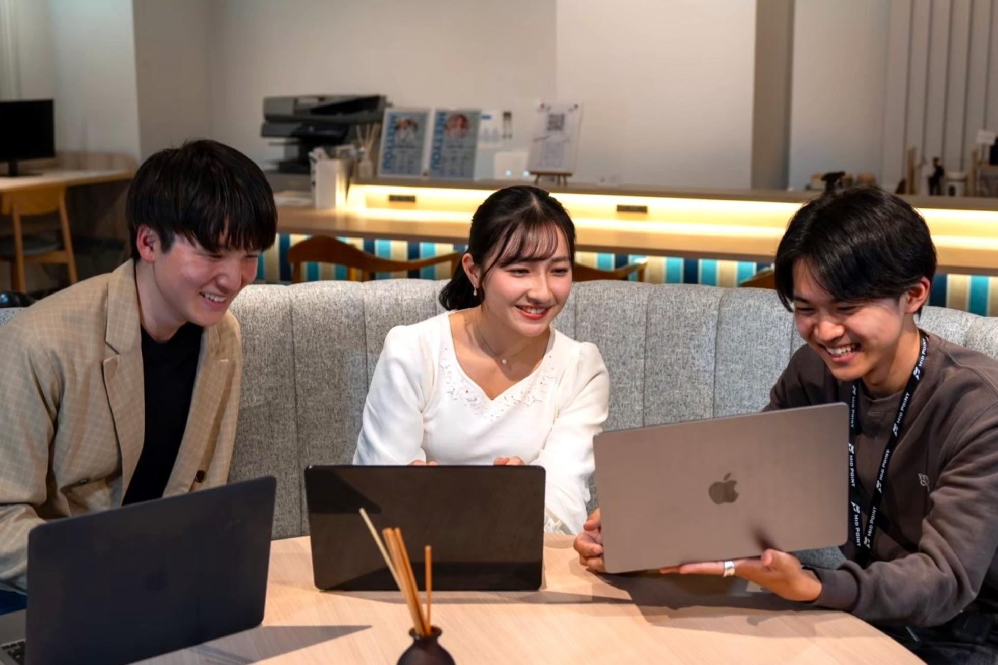 インターン生のオフィス出勤の様子。大学の垣根を越えて、一緒に事業作りをしています