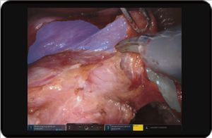 AIによる認識支援のイメージ。損傷リスクの高い臓器を強調表示している様子。