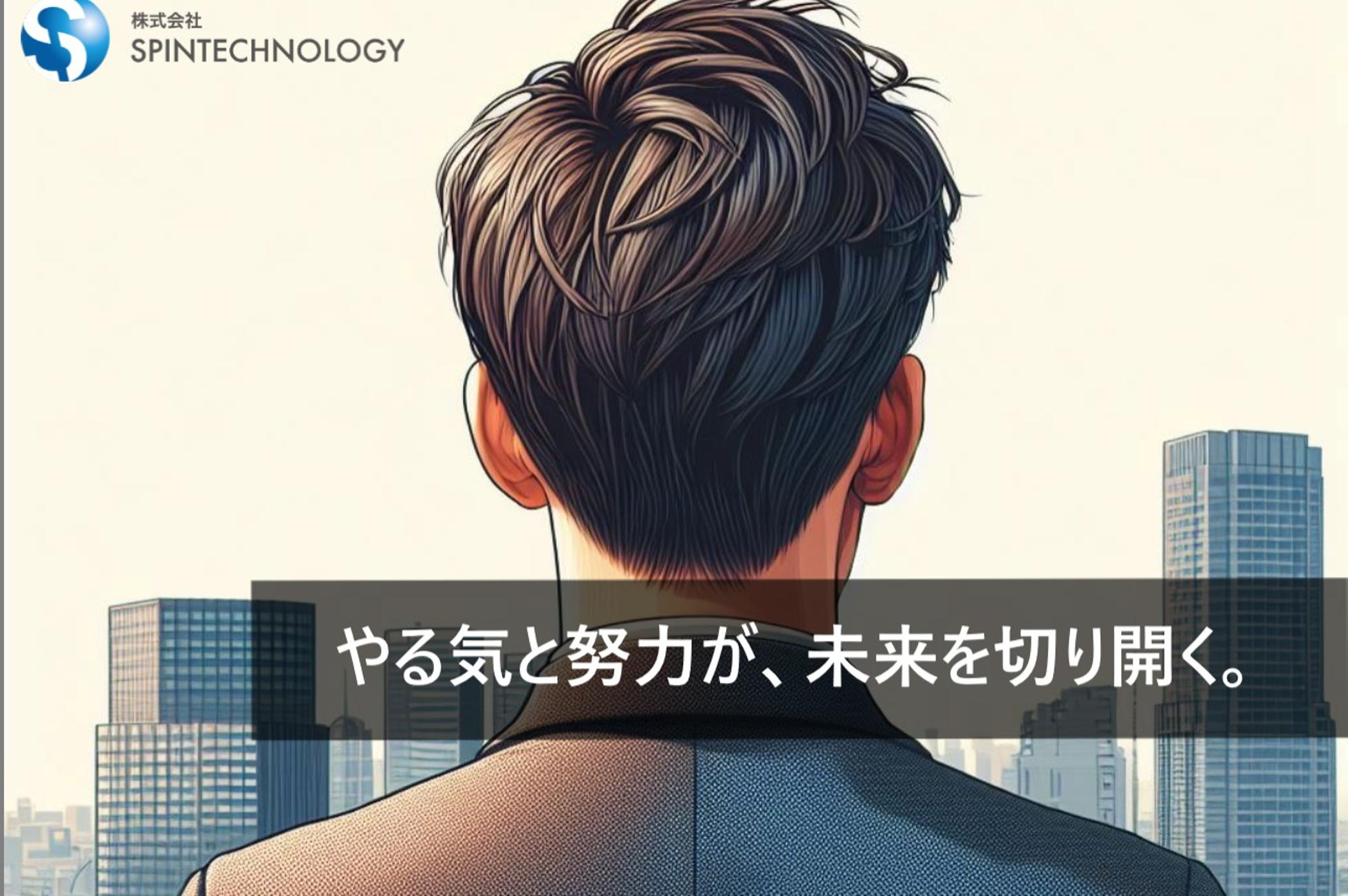 当社は創業間もないベンチャー企業です。 日本一のITベンチャーを目指す上で、問題も発生してくるかと思いますが、 経営理念として「志しむことからすべてがはじまる」と言う経営理念を掲げてます。 志しむと造語を使っていますが、簡潔に言うと志(人生の目的や動機=自己実現したい事)を成し遂げる事を楽しむという事です。 会社の仲間には、必ず幸せになってもらいたい。それが私の嘘偽りのない想いです。 会社と言うのは、1人1人が自己実現を実現する舞台であり、1人1人が主役で1人1人輝く場所です。 今現在、様々な想いを抱えてる人も多いと思います。 今までの人生順風満帆な人、かたや今まで上手くいかず挫折した人、これからが不安な人等、 どんな過去や現在があっても 自分を変えたい!どうにかしたい! と言う想いがあれば、スピンテクノロジーは最後の最後まで仲間の志を成し遂げるまであきらめない! 一緒に協力し時に、時には一緒に悩み、一緒に志しんで行く! そんな仲間と一緒に会社を作っていきたいと思います。
