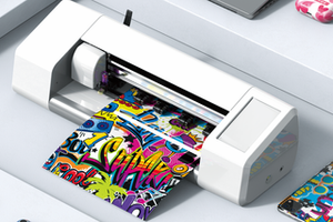新規事業「スマラピ」の製品「スマートプロッター」。製品に合わせ自由な フィルムカットが可能です。